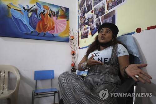 Community leader Luz Nelly Santana, whose life has been threatened by illegal armed groups, talks during an interview in Bogota, Colombia, Thursday, Dec. 17, 2020. Santana and her daughter survived a massacre where 35 people were killed during a street party and decided to flee to the capital where she has lived ever since. (AP Photo/Fernando Vergara) DEC. 17, 2020 PHOTO