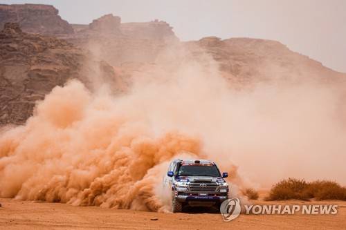epa08935069 A handout photo made available by ASO of Akira Miura of Japan and Laurent Lichtleuchter of France, Toyota, Toyota Auto Body, in action during the 10th stage of the Dakar 2021 between Neom and Al-Ula, in Saudi Arabia, 13 January 2021. EPA/Florent Gooden HANDOUT via ASO SHUTTERSTOCK OUT HANDOUT EDITORIAL USE ONLY/NO SALES/NO ARCHIVES