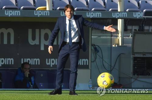 epa08935117 Inter's head coach Antonio Conte reacts during the Italian Cup round of 16 soccer match between ACF Fiorentina and Inter Milan at Artemio Franchi stadium in Florence, Italy, 13 January 2021. EPA/Claudio Giovannini