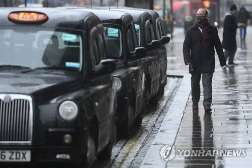epa08935120 A masked man passes a row of taxis waiting for fares in London, Britain 13 January 2021. A national lockdown across England began on midnight on 05 January 2021. 2020 saw the largest increase in UK deaths in a single year since 1940, according to provisional ONS figures. In 2020, nearly 697,000 deaths were registered, compared with an average of nearly 606,000 each year between 2015 and 2019 EPA/NEIL HALL