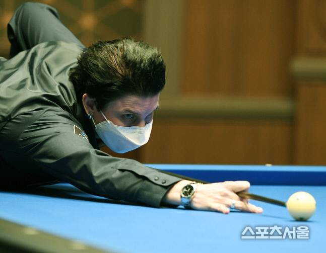 테레사 크롬펜하우어(네덜란드)가 13일 경기도 일산 MBC드림센터에서 진행된 ‘‘코리아 당구 그랑프리’ 여자 3쿠션 경기에서 이신영을 맞아 승부를 펼치고있다. 2021.01.13. 김도훈기자 dica@sportsseoul.com