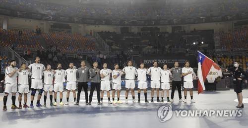 epa08935417 The team of Chile lines up before the opening match between Egypt and Chile at the 27th Men's Handball World Championship, in Cairo, Egypt, 13 January 2021. EPA/Mohamed Abd El Ghany / POOL