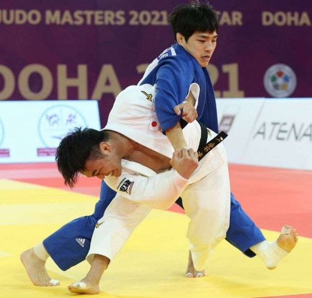한국유도의 간판스타 안창림(뒤쪽·27)이 13일 카타르 도하 루사일 스포츠 아레나에서 열린 2021 국제유도연맹(IJF) 도하 마스터스 남자 73kg급 결승에서 일본의 하시모토 소이치(30)를 연장 접전 끝에 반칙승을 따내며 우승했다. 2017년 세계선수권 우승자인 하시모토는 안창림의 오른팔을 잡아당기며 꺾는 위험한 기술로 반칙패 판정을 받았다. 2016년 리우데자네이루 올림픽에서 16강에서 탈락한 재일교포 출신 안창림은 자신이 태어난 도쿄에서 올림픽 금메달을 꿈꾸고 있다. 대한유도회 제공