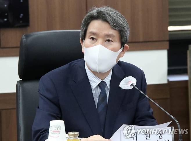 (서울=연합뉴스) 김승두 기자 = 이인영 통일부 장관이 14일 정부서울청사 통일부 대회의실에서 열린 제318차 남북교류협력추진협의회를 주재하며 발언하고 있다. 2021.1.14