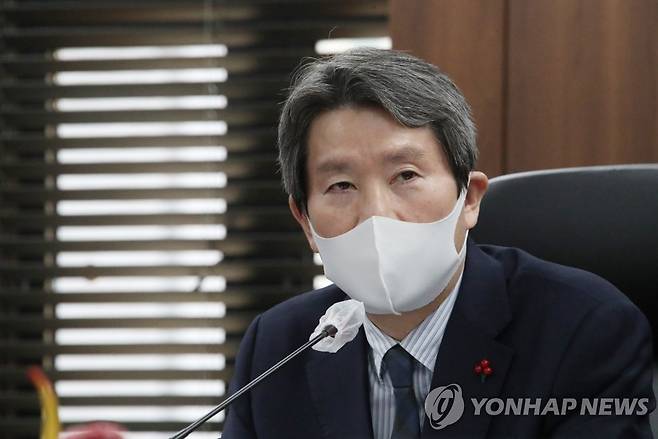 (서울=연합뉴스) 김승두 기자 = 이인영 통일부 장관이 14일 정부서울청사 통일부 대회의실에서 열린 제318차 남북교류협력추진협의회에 참석해 발언하고 있다. 2021.1.14