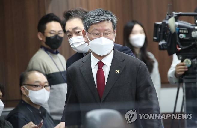 (서울=연합뉴스) 김승두 기자 = 이용구 법무부 차관이 14일 정부서울청사 통일부 대회의실에서 열린 제318차 남북교류협력추진협의회에 참석하고 있다. 2021.1.14