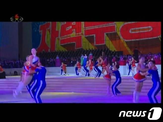 (서울=뉴스1) = 북한 관영 조선중앙TV는 지난 13일 제8차 노동당 대회 경축을 위해 열린 대공연 '당을 노래하노라' 영상을 14일 오전 방영했다. 중요예술단체를 비롯해 군대와 사회의 예술단체, 예술교육기관 창작가, 예술인, 체육인들과 청소년학생들이 출연한 공연은 제1부와 제2부로 나뉘어 진행됐다. 공연엔 김정은 당 총비서를 비롯해 당 대회 대표자들이 대거 참석했다. ('조선중앙TV' 갈무리)