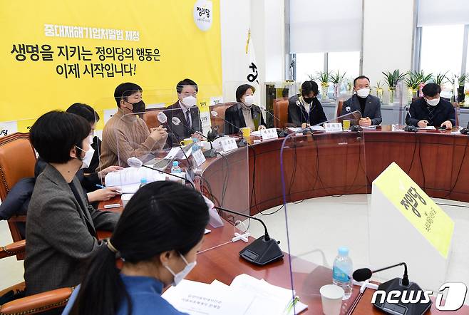 (서울=뉴스1) 박세연 기자 = 김종철 정의당 대표가 14일 서울 여의도 국회에서 열린 '아동학대 및 입양 실천에 대한 정책간담회'에서 인사말을 하고 있다. 2021.1.14/뉴스1
