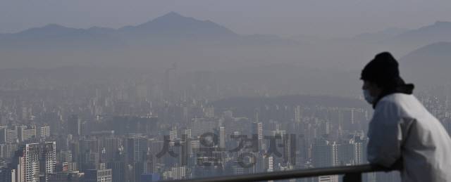 [서울경제] 인천·경남·제주를 제외한 전국 대부분 지역의 미세먼지 농도가 '나쁨' 수준을 보이고 고비사막과 내몽골에서 발원한 황사가 한반도에 유입된 14일 오전 서울 중구 남산에서 바라본 도심이 짙은 안개에 갇혀 있다./오승현기자 2021.01.14