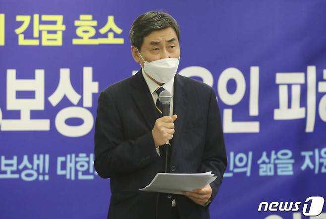 (서울=뉴스1) 송원영 기자 = 제41대 대한체육회장 선거에 나선 이종걸 민족화해협력범국민협의회 대표 상임의장이 14일 서울 중구 스포애니 피트니스클럽에서 기자회견을 하고 있다. 이날 이종걸 후보는 "코로나19로 체육인들이 생계 걱정을 넘어 생존 위기에 몰렸다"며, "체육 기금 1조원 확보해 체육인 1인당 1천만 원을 지급하겠다"고 공약했다. 2021.1.14/뉴스1