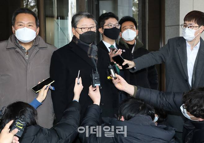 [이데일리 이영훈 기자] 조원진 우리공화당 대표가 14일 오전 서울 서초구 대법원에서 열린 박근혜 전 대통령 국정농단 사태 등 재상고심 선고 후 입장을 밝히고 있다.