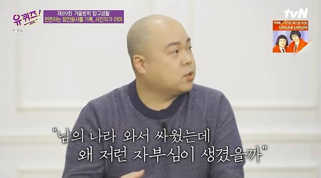 1월13일 방송된 tvN 예능 프로그램 '유 퀴즈 온 더 블럭'에는 22개국 한국전쟁 참전용사들을 찾아다니는 사진작가 라미가 출연했다.