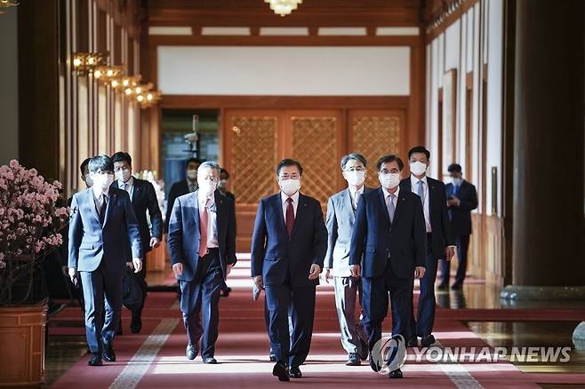 (서울=연합뉴스) 최재구 기자 = 문재인 대통령이 14일 청와대에서 열린 강창일 주일대사 신임장 수여식에 참석하고 있다. 2021.1.14