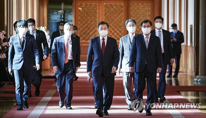 (서울=연합뉴스) 최재구 기자 = 문재인 대통령이 14일 청와대에서 열린 강창일 주일대사 신임장 수여식에 참석하고 있다. 2021.1.14