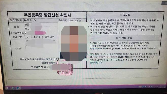 이후 주민센터 측이 사진이 부착된 신분증을 요구하자 B씨는 지난해 허위로 발급받은 임시 주민등록증을 제시했습니다.