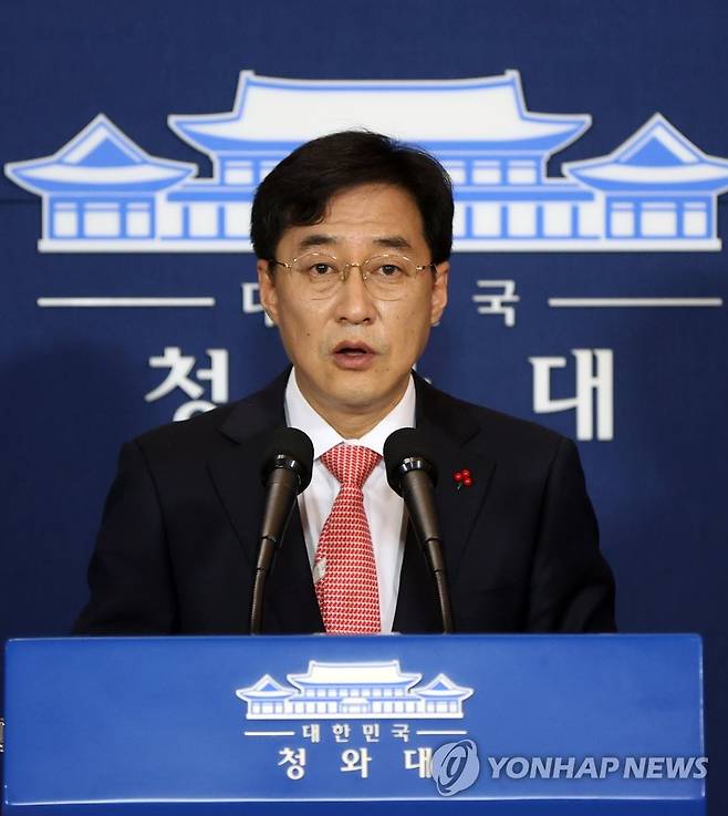 (서울=연합뉴스) 최재구 기자 = 강민석 청와대 대변인이 14일 청와대 춘추관에서 박근혜 전 대통령 형 확정과 관련해 브리핑하고 있다. 2021.1.14