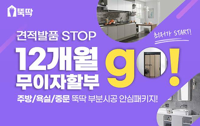 품격 있는 인테리어 서비스를 제공하는 몽땅뚝딱(이하 '뚝딱')은 부분 인테리어 시공 상품에 파격적으로 12개월 무이자 할부를 제공한다고 13일 밝혔다.