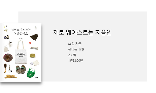 그런데도 쓰레기는 매일 생겼다. 평균 한 사람이 매일 만들어내는 쓰레기는 1.06kg이다. 그 중 대부분이 재활용 될 수 없다는 것을 알고 나서는 현대사회에서 소비하는 인간으로 살아가는 것이 두려울 지경이었다. 잘 하고 싶은 마음은 굴뚝 같은데 방법을 몰라서 지레 포기하고 마는 열등생이 된 기분이었다. 소일의 ‘제로 웨이스트는 처음인데요’는 이처럼 쓰레기를 줄이고자 하는 의지는 있지만 어떻게 시작하면 좋을지 모르겠는 이들을 위한 좋은 가이드가 되어줄 책이다.