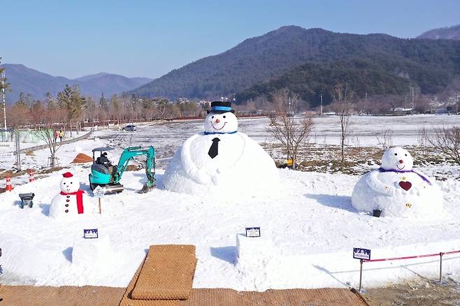 대형 눈사람은 내장산 생태공원에 쌓인 눈으로 아빠, 엄마, 아이 눈사람 3개로 구성, 최대높이 6m, 폭 4m의 조형물로 신축년을 맞은 새해 희망의 의미를 더했다.