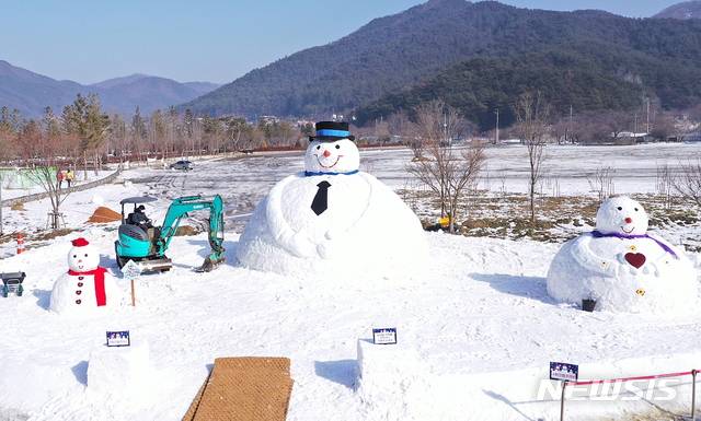 [정읍=뉴시스] 김종효 기자 = 전북 정읍 내장산단풍공원 안에 대형 눈사람이 등장했다.