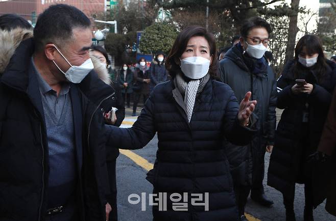 [이데일리 노진환 기자] 서울시장 보궐선거 출마를 선언한 나경원 국민의힘 전 의원이 14일 오후 재건축 추진중인 서울 금천구 남서울 럭키아파트를 방문해 지역 주민의 고충을 듣고 있다.국회사진취재단