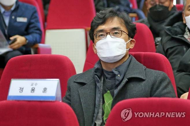 (경주=연합뉴스) 손대성 기자 = 14일 경북 경주 월성원자력본부 홍보관에서 국민의힘 이철규(강원 동해), 김석기(경주), 김영식(구미을) 의원과 함께 온 한국과학기술원(KAIST) 원자력양자공학과 정용훈 교수가 최근 불거진 삼중수소 검출 논란을 확인하기 위해 방문해 앉아 있다. 2021.1.14