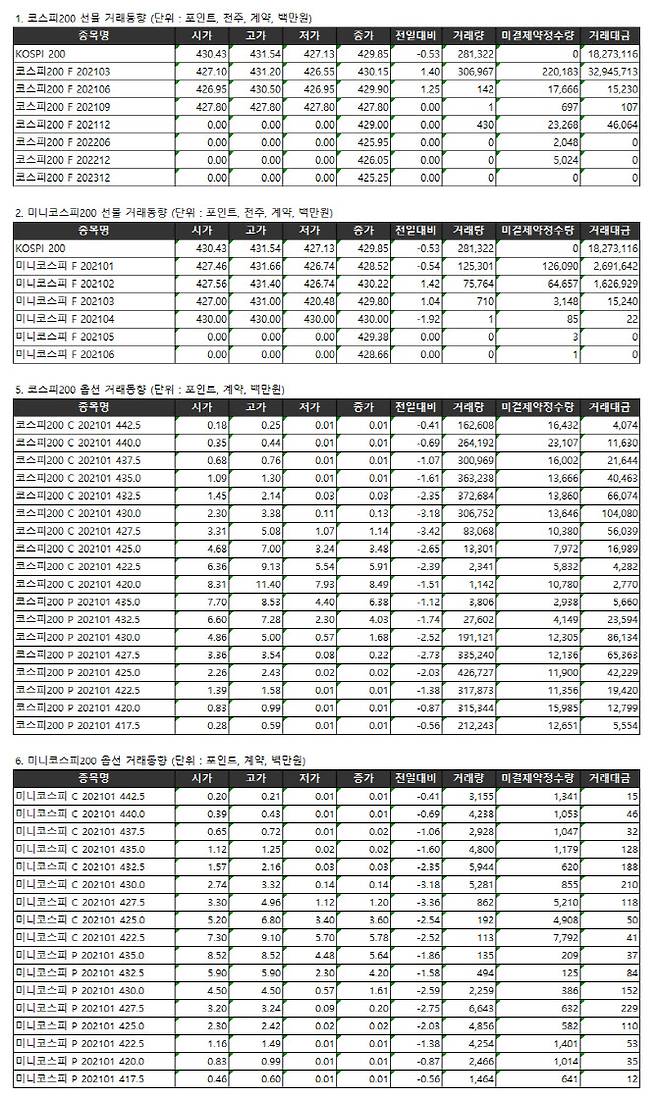 [표]거래소 주가지수선물·옵션시세표(1/14)