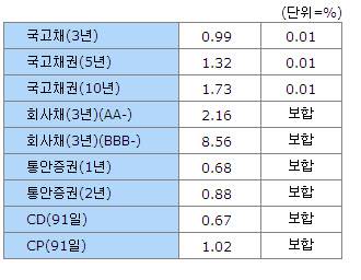 [표]14일 채권시장 종합 - 금리동향