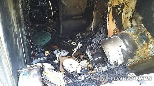 (부산=연합뉴스) 14일 오후 3시께 부산 부산진구 주택에서 원인을 알 수 없는 불이 나 내부가 검게 타 있다. 2021.1.14 [독자 제공·재판매 및 DB 금지]