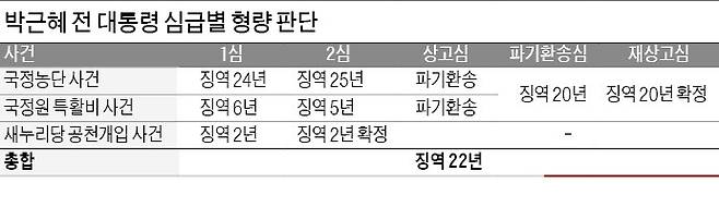 박근혜 前대통령 총 22년 징역..돈 건넨 국정원장들도 모두 실형