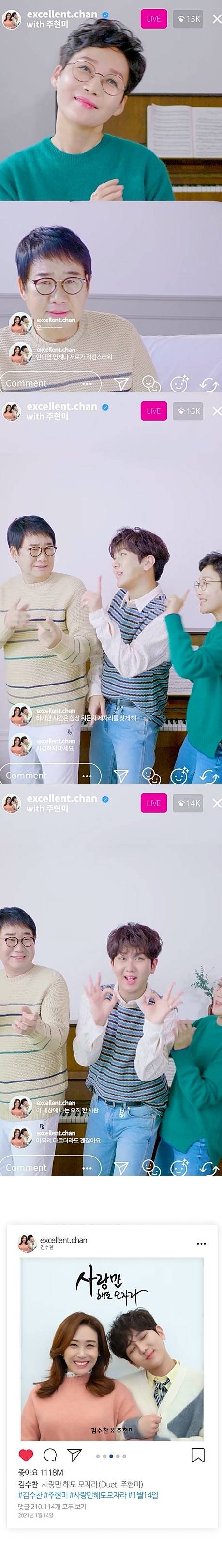 '수찬노래방'을 통해 방시혁 프로듀서의 2003년 작 '엉덩이' 리메이크에 도전해 화제를 모은 김수찬은 신곡을 통해 주현미와 호흡을 맞췄다.
