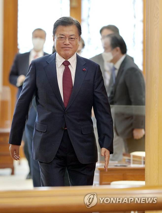 (서울=연합뉴스) 문재인 대통령이 14일 오전 도미타 고지 주한일본대사를 접견하고 청와대 접견실을 나서고 있다. 2021.1.14 [청와대 제공. 재판매 및 DB금지]