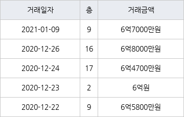 [이 기사는 조선비즈와 아티웰스가 공동으로 개발해 서비스하는 로봇 기사입니다.]국토교통부 실거래가 공개시스템에 따르면 지난 2020년 12월 26일 서울특별시 강북구 미아동 SK북한산시티아파트 16층 전용면적 59㎡형이 6억8000만원에 거래됐다.