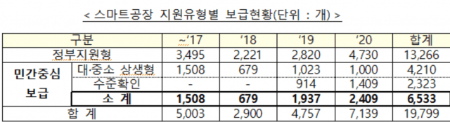 지난해 중기부가 보급한 스마트공장은 7139곳으로 목표치(5600곳)보다 1500여곳 많았다.