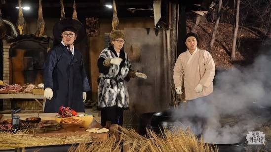 이날 세 사람은 사극 복장으로 나타나 가마솥에 밥과 요리를 하면서 '먹방'을 시작했다.