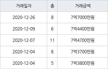 [이 기사는 조선비즈와 아티웰스가 공동으로 개발해 서비스하는 로봇 기사입니다.]국토교통부 실거래가 공개시스템에 따르면 지난 2020년 12월 26일 서울특별시 강북구 미아동 미아뉴타운두산위브트레지움 8층 전용면적 59㎡형이 7억7000만원에 거래됐다.