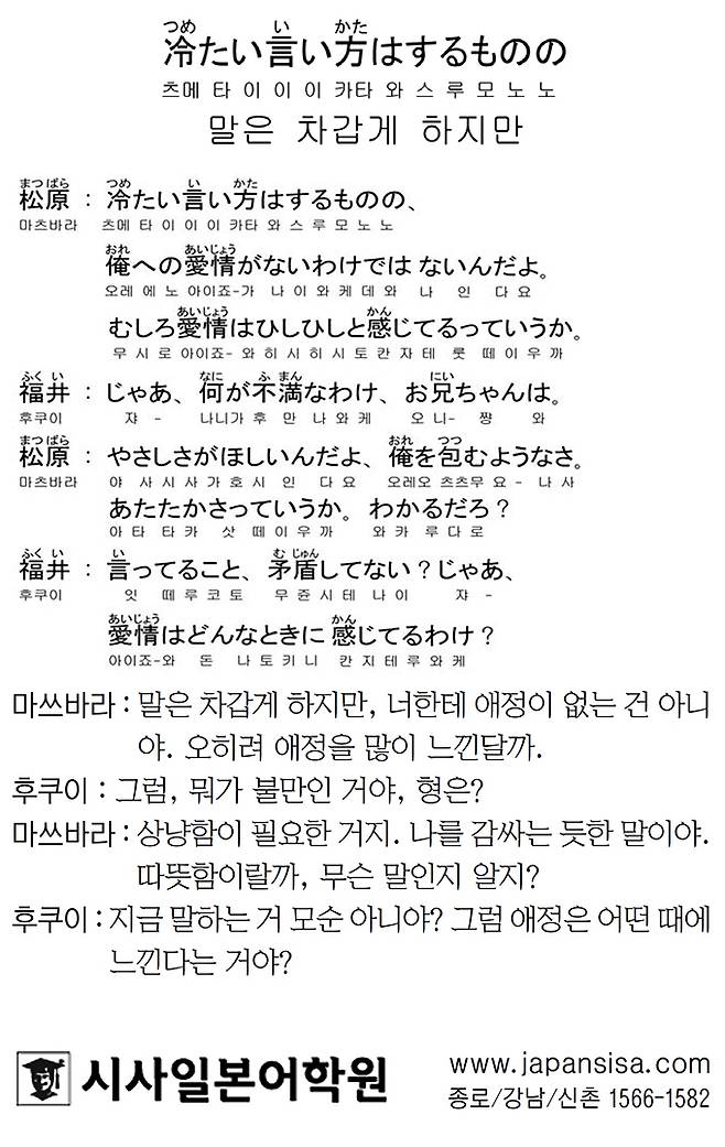 [시사일본어학원의 초단기 일본어 회화] 말은 차갑게 하지만