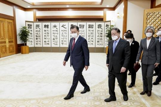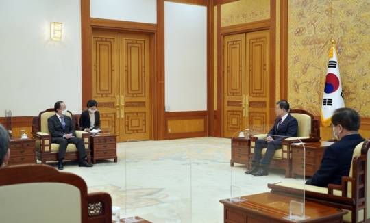 도미타 대사는 미국 바이든 행정부 출범에 맞춰 주미일본 대사로 자리를 옮긴다. 문 대통령은 도미타 대사가 주미일본 대사로 부임한 뒤에도 한일관계 발전과 한미일 공조를 위해 계속 노력해 줄 것을 당부했다.