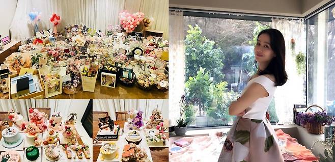 손예진은 14일 자신의 인스타그램에 “생일날 이렇게 많은 꽃다발과 케이크 선물들을 받은 건 처음이다. 너무 놀랍고 감동적이다”라면서 인증샷을 게재했다.