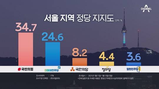 네, 서울에서 국민의힘과 민주당 지지율 격차는 처음으로 두 자릿수로 벌어졌는데요.