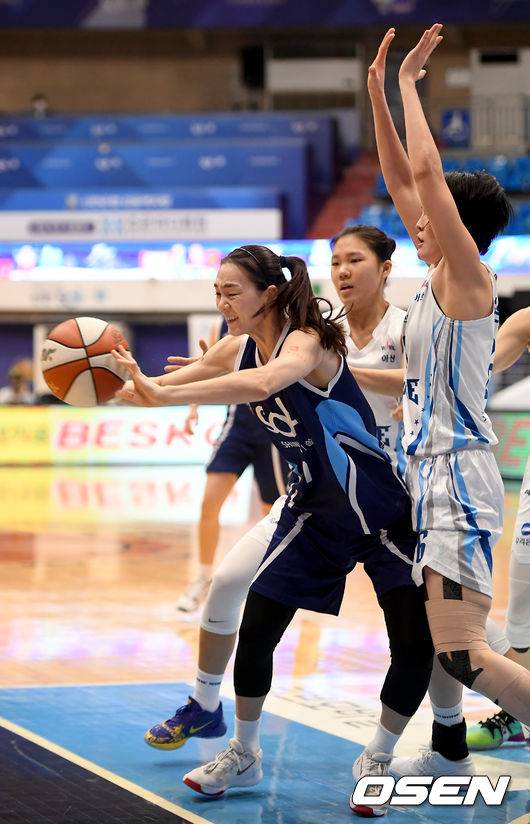 3쿼터 신한은행 한채진이 패스를 시도하고 있다./ksl0919@osen.co.kr