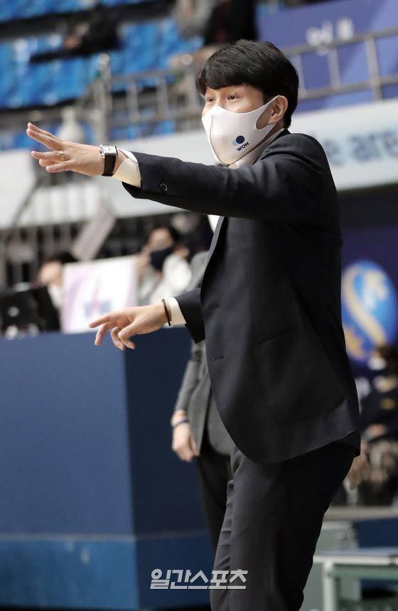 2020~2021 여자프로농구 신한은행과 우리은행의 경기가 14일 오후 인천도원체육관에서 열렸다. 위성우감독이 선수들에게 지시를 하고 있다.