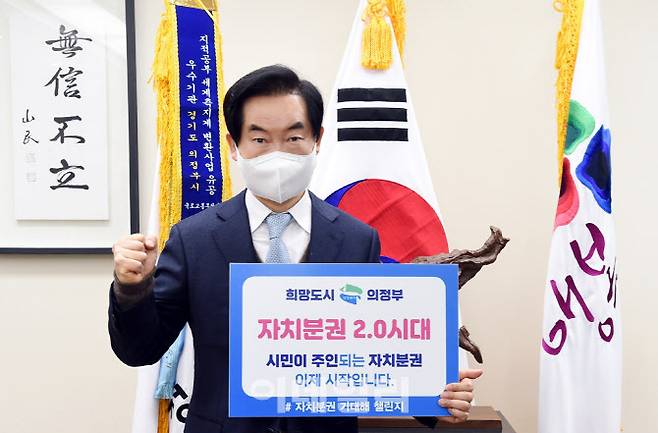 [의정부=이데일리 정재훈 기자] 안병용 의정부시장이 14일 ‘자치분권 기대해 챌린지’에 동참했다.