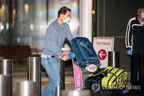 epa08936923 Rafael Nadal arrives at Adelaide Airport ahead of the Australian Open tennis tournament, Adelaide, Australia, 14 January 2021. Arriving players will serve a 14-day quarantine period ahead of the scheduled major set to get underway on 08 February. EPA/MORGAN SETTE NO ARCHIVING AUSTRALIA AND NEW ZEALAND OUT