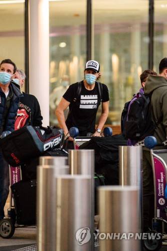 epa08936921 Players and officials arrive at Adelaide Airport ahead of the Australian Open tennis tournament, Adelaide, Australia, 14 January 2021. Arriving players will serve a 14-day quarantine period ahead of the scheduled major set to get underway on 08 February. EPA/MORGAN SETTE NO ARCHIVING AUSTRALIA AND NEW ZEALAND OUT