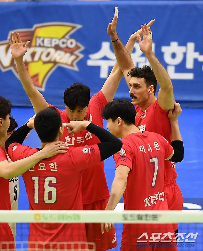 '2020-2021 V리그' 남자부 한국전력과 OK금융그룹의 경기가 14일 수원실내체육관에서 열렸다. 한국전력 러셀이 득점 후 환호하고 있다. 수원=박재만 기자 pjm@sportschosun.com/2021.01.14/
