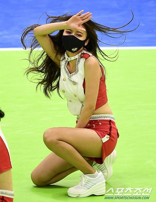 '2020-2021 V리그' 남자부 한국전력과 OK금융그룹의 경기가 14일 수원실내체육관에서 열렸다. 한국전력 치어리더가 멋진 공연을 선보이고 있다. 수원=박재만 기자 pjm@sportschosun.com/2021.01.14/