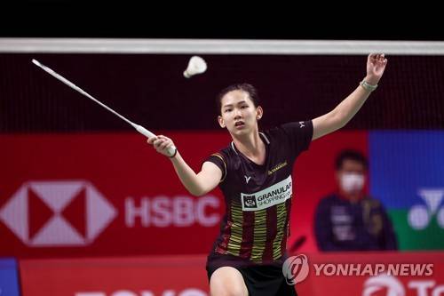 epa08936990 A handout photo made available by the Badminton Association of Thailand of Thailand's Pornpawee Chochuwong in action against Carolina Marin of Spain during their women's singles match at the Yonex in Bangkok, Thailand, 14 January 2021. EPA/BADMINTON ASSOCIATION OF THAILAND / HANDOUT HANDOUT EDITORIAL USE ONLY/NO SALES