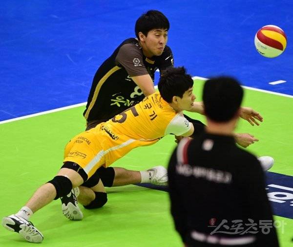 OK금융그룹 조국기가 리시브를 받고 있다.