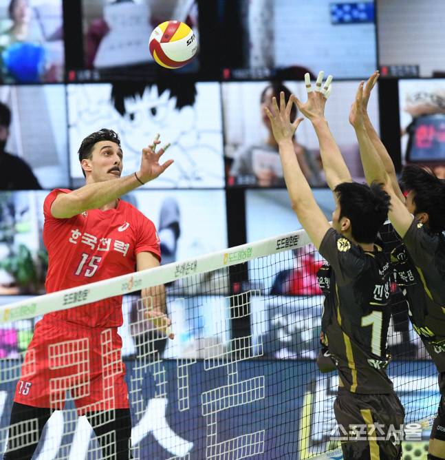 한국전력 러셀이 14일 수원체육관에서 진행된 OK금융그룹과의 경기에서 공격하고있다. 2021.01.13. 김도훈기자 dica@sportsseoul.com